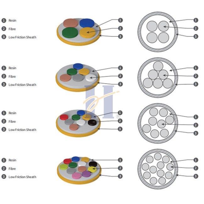 Principales características | 2 Cable de fibra óptica de núcleo, cable soplado por aire, cable soplado por aire directamente enterrado |